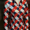Raise a little dust and a whole lotta pride in the True North performance shirt by Sundial Show Clothing. Built for the bold and styled for the spotlight, this rodeo-ready stunner is decked out in rich Canadian red, classic black, and clean white—highlighted with mirror-bright prism shine and proud maple leaf detailing. Whether you’re flying around barrels or walking the grand entry, this shirt catches every glint of light and every eye in the stands. It's a salute to the True North with the heart of a champion. Saddle up and show ’em what Canada’s made of. Pictured here with our Classic collar!