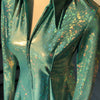 Inspired by beautiful sonoran gold turquoise stones, this beautiful aqua fabric features a golden iridescent prism overlay! Made from lux performance stretch fabric to keep you comfortable and stylish.