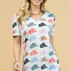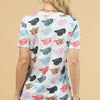 Absolutely adorable print on this perfectly western v-neck! Light grey blended fabric with an all-over colorful cowboy hat print. Flowy, lightweight fabric and true to size. Made in the USA and limited quantity so get yours before your size sells out...