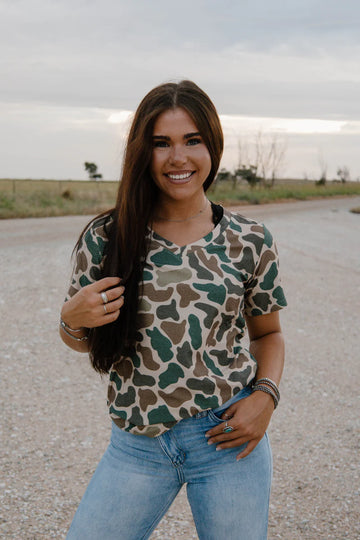 S, M - Pink & Turquoise Aztec V-Neck Tee
