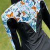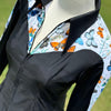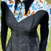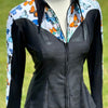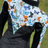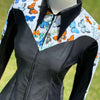 Command attention in and out of the arena with the Midnight Monarch—a show-stopping rodeo shirt that blends fierce and feminine with effortless grace. This one-of-a-kind piece features a bold black camo base, softened by an intricate butterfly accent in striking shades of teal, orange, white, and deep blue. Sparkling crystals are hand-placed for just the right amount of rodeo glam, catching the light with every movement. Tailored for a flattering silhouette and finished with refined details, this shirt delivers high-class drama with a hint of edge. Whether you're in the spotlight or on the sidelines, Midnight Monarch was made to make an entrance.